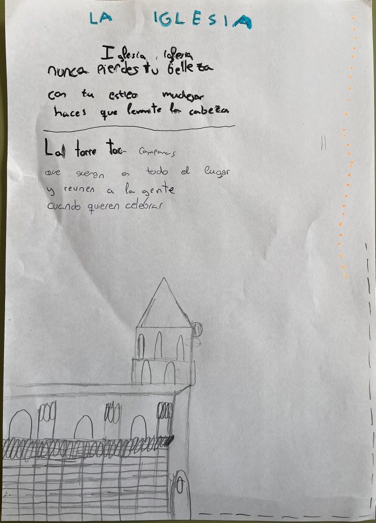 El alumnado de 4º a 6º lo hizo sobre la iglesia y el parque de los mayores.